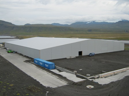 Þessi mynd var tekin af vatnsverksmiðjunni úr 20 m hæð í lyftu. Búið er s.s. að leggja þak og hliðar. Húsið er 7.300 fer. sem gerir húsið að stærsta húsinu á Snæfellsnesi og ef ekki á öllu Vesturlandi fyrir utan álverið á Grundartanga.