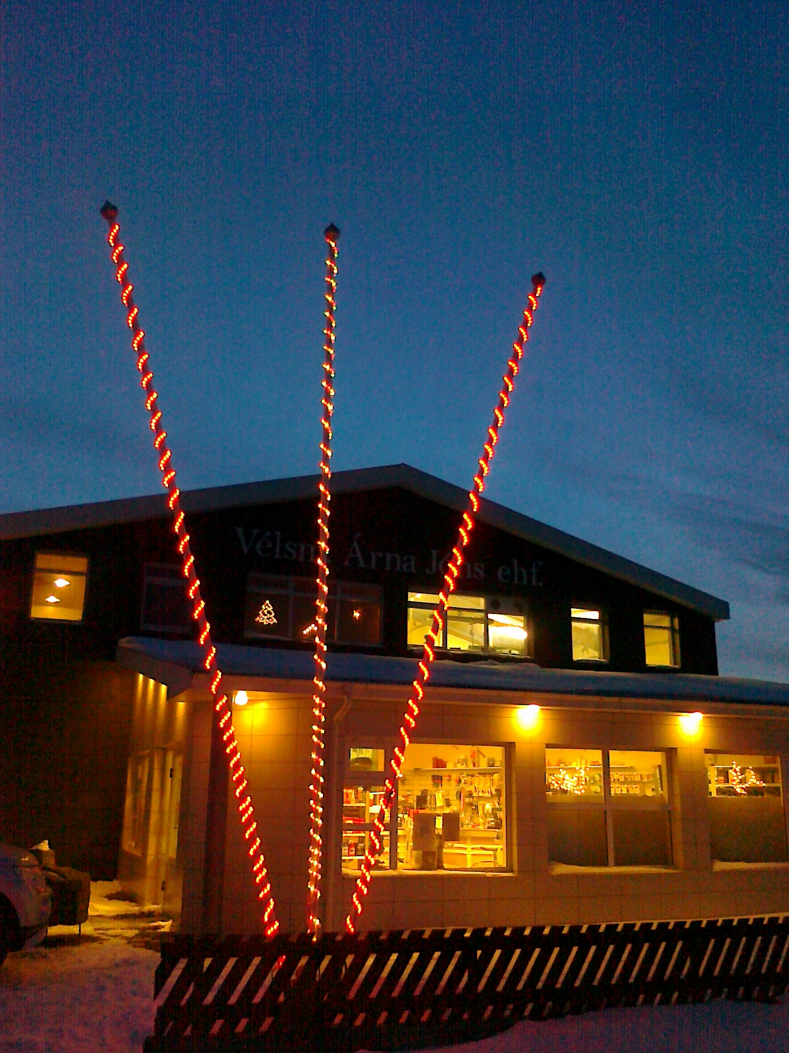 Starfsmenn Vélsmiðju Árna Jóns gerðu sér dagamun í gær og skreyttu húsakynni vélsmiðjunnar. Mjög gott veður er þessa stundina á Rifi. Hægur N/A og 5 stiga frost.