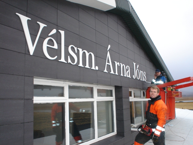 Á mánudaginn var voru settir stafir utan á hús Vélsmiðju Árna Jóns ehf. við Smiðjugötu 6, Rifi.