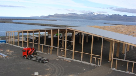 Þann 11. júní var búið að leggja um 50% af þaki vatnsverksmiðjunnar. Gott veður hefur verið undanfarna daga og hefur áætlega gengið að leggja þakplöturnar.